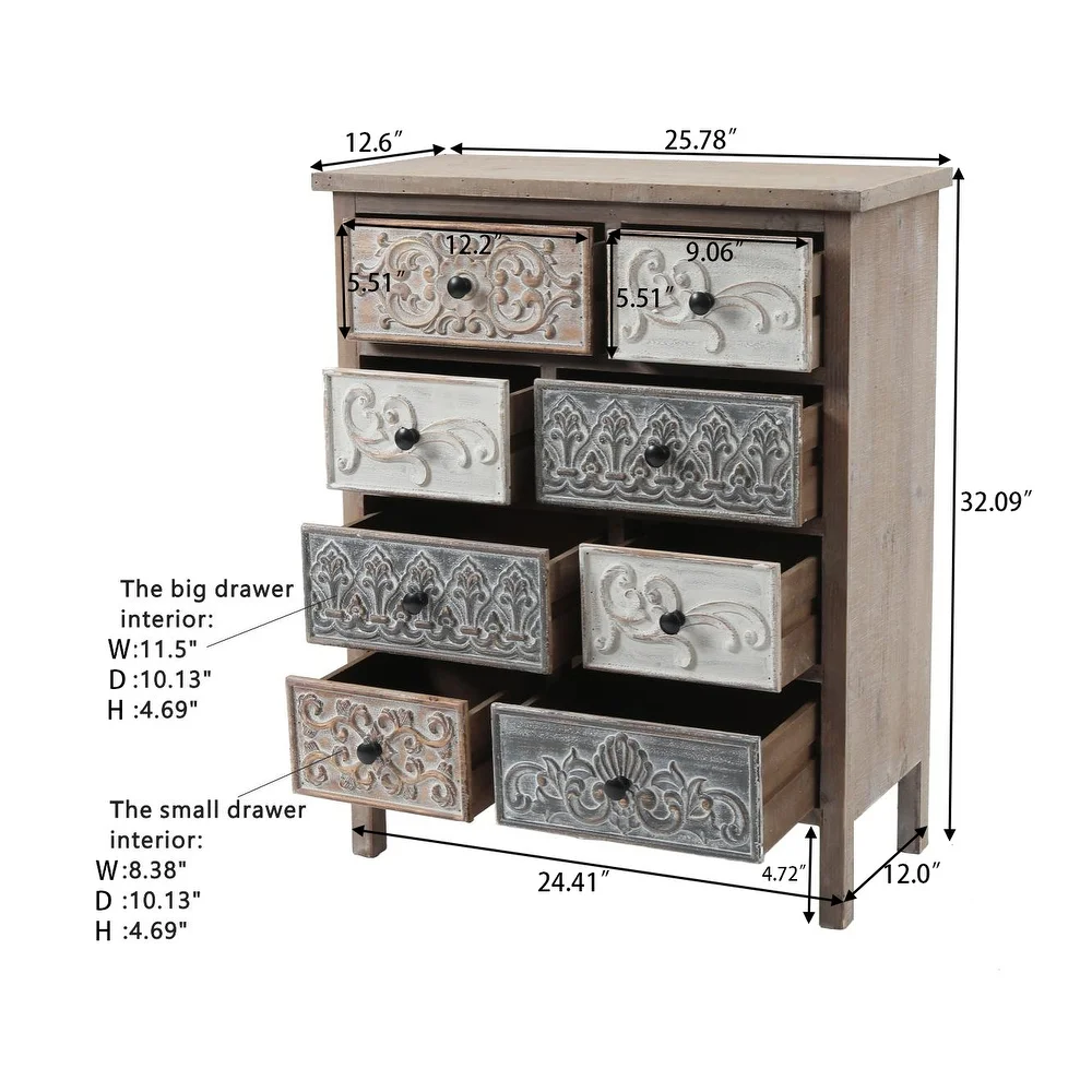 Add a rustic farmhouse charm to your home decor with The Curated Nomad Brewa Varied Rustic Carved Wood 8-Drawer Chest.